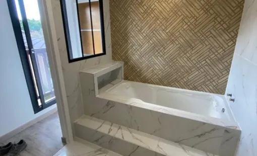 Pose de carrelage en mosaïque pour une salle de bain d'une maison à Poisy